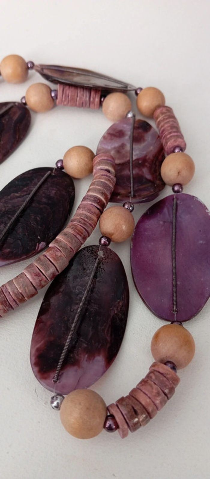 Sautoir vintage en perles de nacre et bois - photo numéro 6