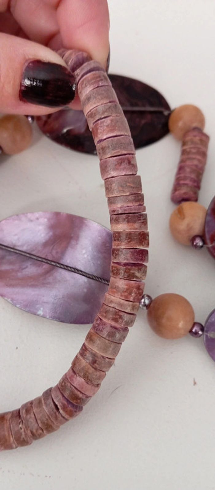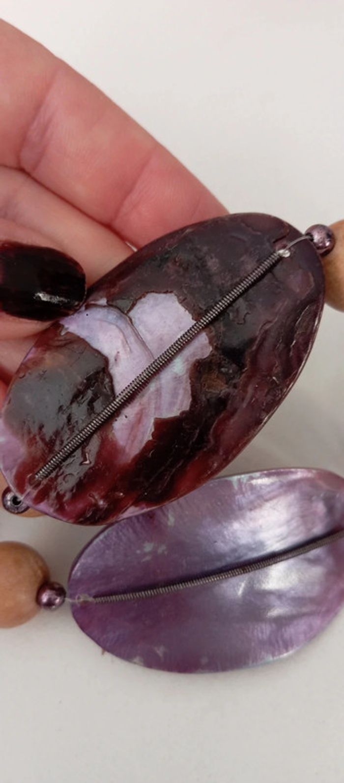 Sautoir vintage en perles de nacre et bois - photo numéro 7