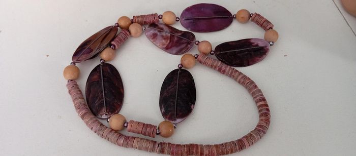 Sautoir vintage en perles de nacre et bois - photo numéro 2