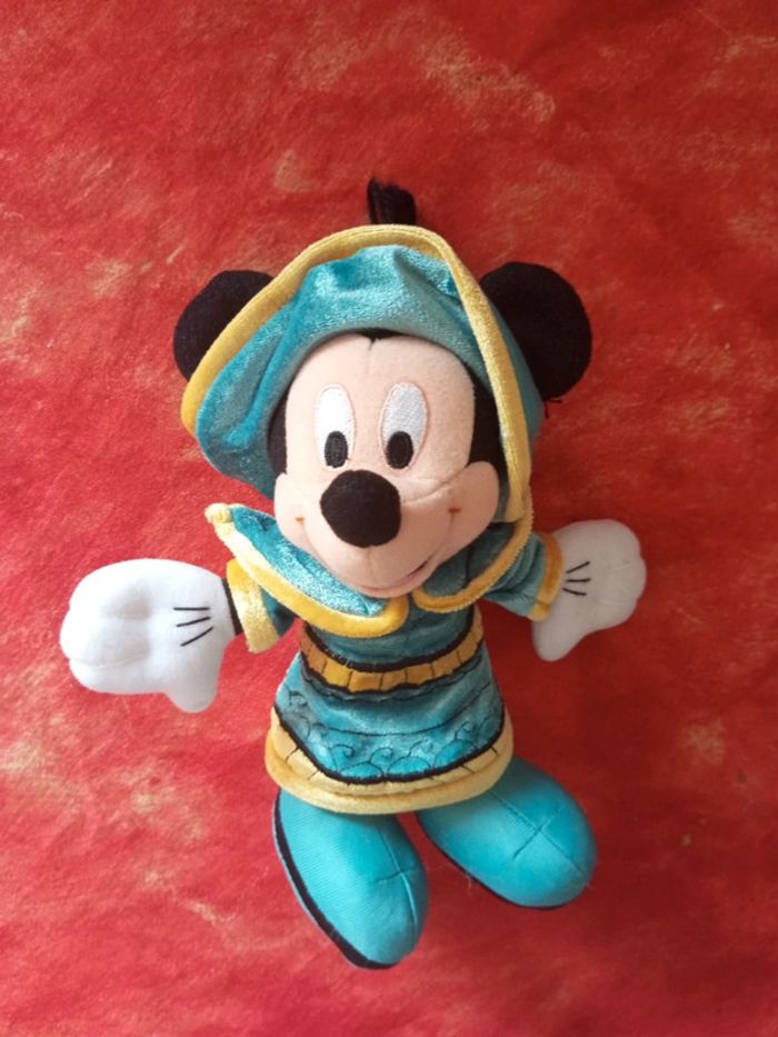 Peluche Mickey prince moyen âge Rome romain gladiateur, tenue verte et jaune, rare et collector de Walt Disney Company, exclusive for London En très bon état, comme neuf, vendu comme sur les différentes photos. Dans mon dressing, il y a d'autres Disney , des Marvel , des doudous, des Petshop, des Lego Duplo, des Playmobil, des Barbie et beaucoup de peluches, jeux et jouets vintage