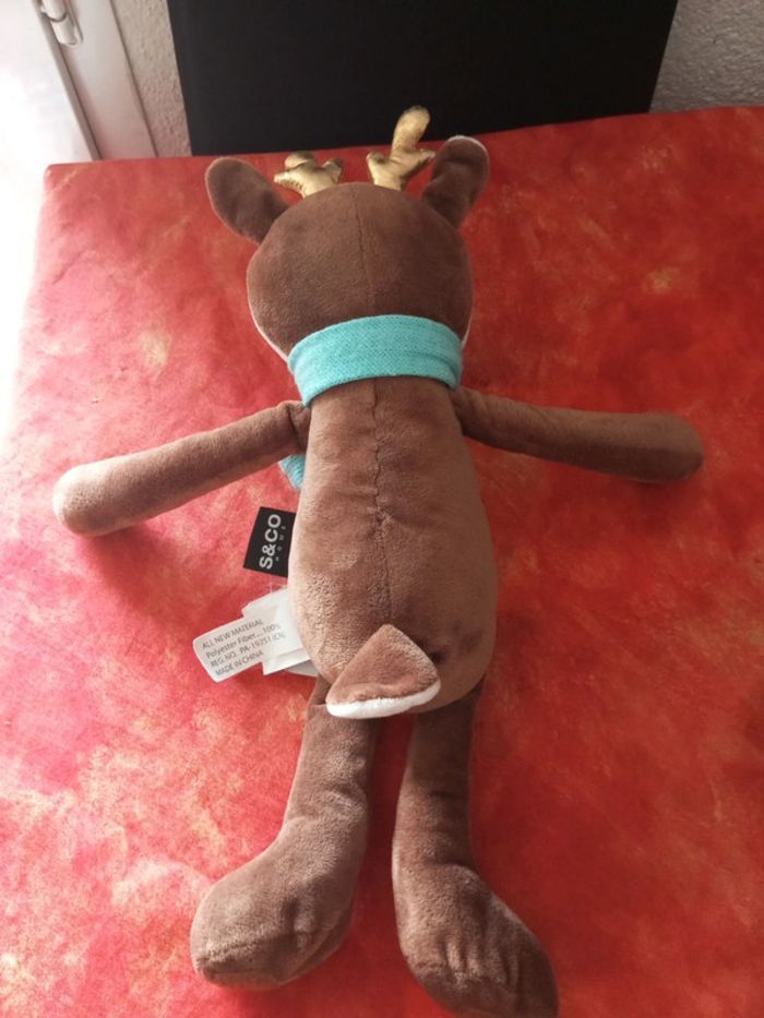 Peluches Rennes, cerf, biche de la marque S&co home, avec scratch aux mains et au pieds, écharpe bleu Très bon état, vendu comme sur les différentes photos. Dans mon dressing, il y a d'autres peluches, des poupées anciennes, des Petshop, des Lego Duplo, des Playmobil, des Barbie et beaucoup de jeux et jouets vintage