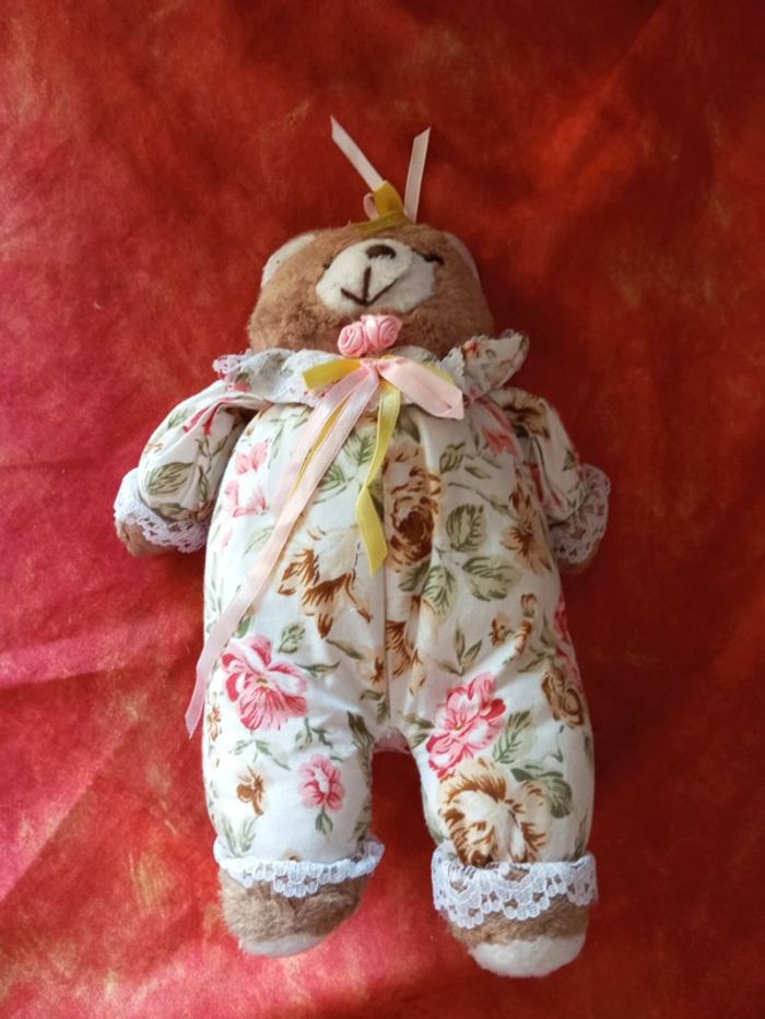 Ours marron vintage tenue à fleurs - photo numéro 1