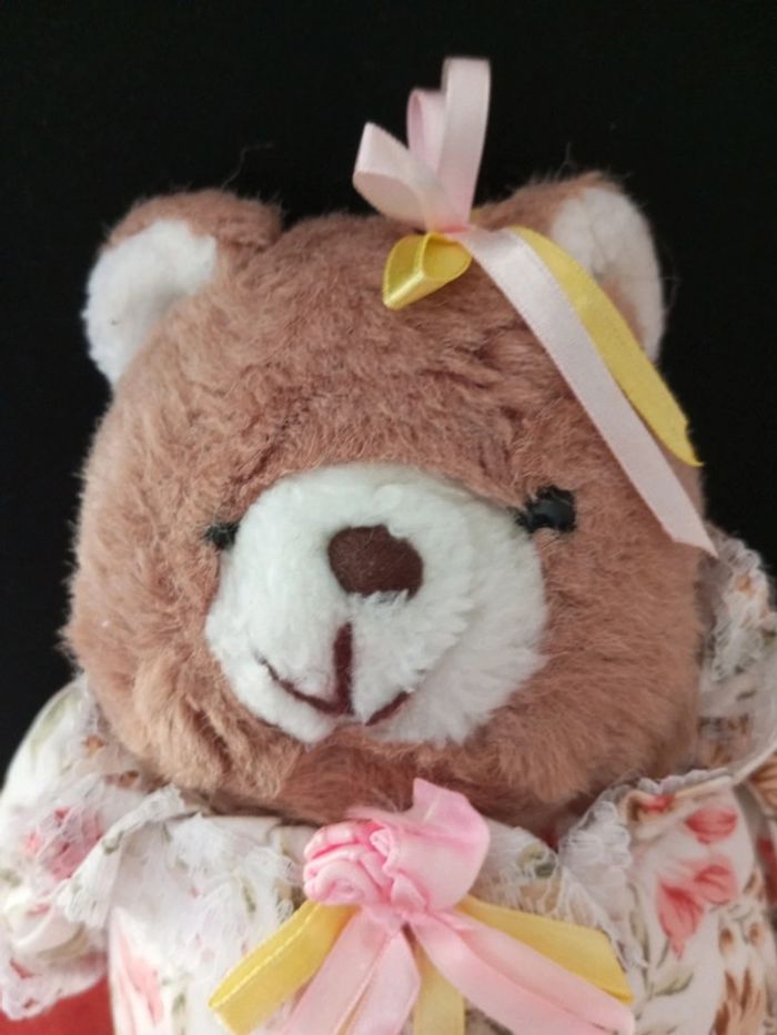 Ours marron vintage tenue à fleurs - photo numéro 3