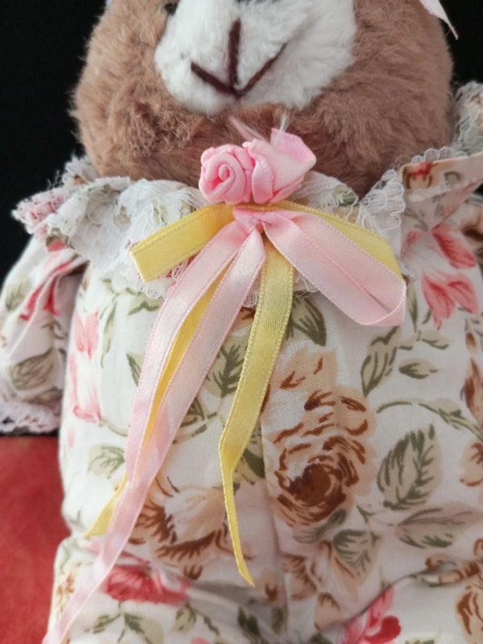 Ours marron vintage tenue à fleurs - photo numéro 5