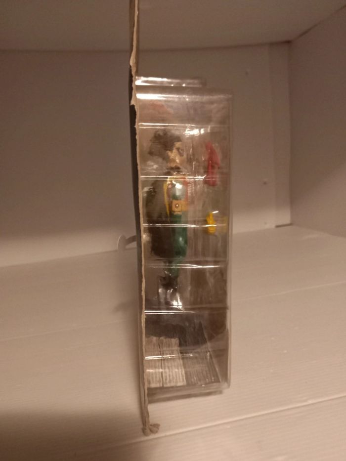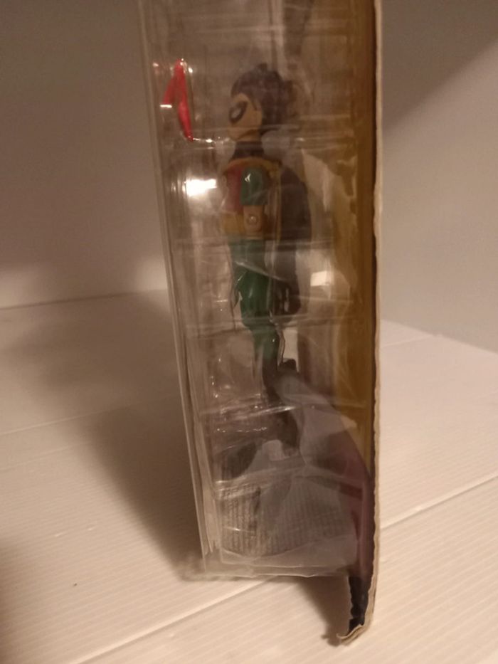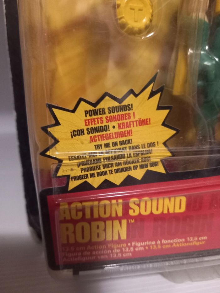 #dcstephbreizh44 #batmanstephbreizh44 Neuf non déballé l'emballage à un peu souffert sur les tranches. Robin parlant, la languette piles est toujours présente. Livraison dans un carton solide avec papier bulles et rembourrage. Interdit aux enfants de moins de 3ans présence de petites pièces risques d'étouffement. Retour possible sous 14jours produit non déballé.