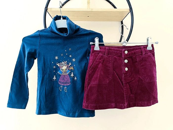 5 ans ensemble teeshirt col roulé sergent major et jupe hivers Okaïdi