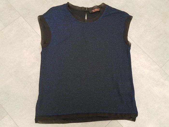Haut de fete soiree bleu et noir pailleté T 36/38 - photo numéro 1