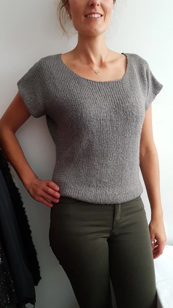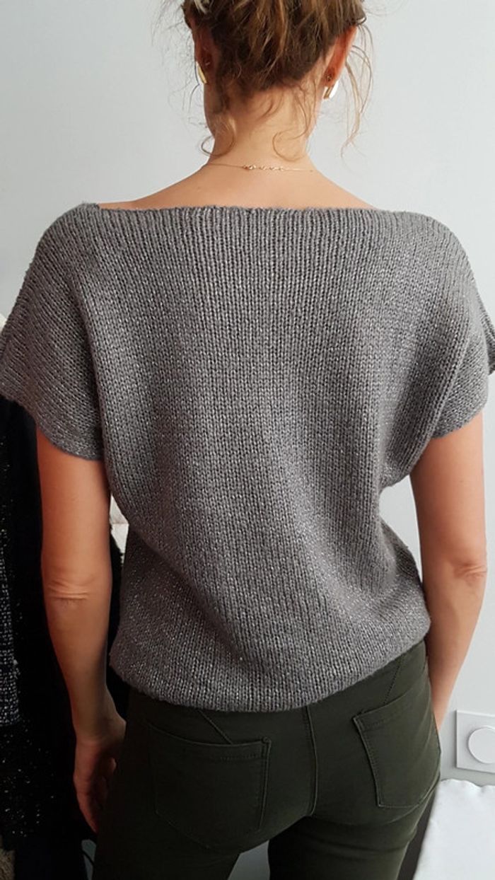 Pull manches courtes  gris fils argenté 36-38 - photo numéro 8