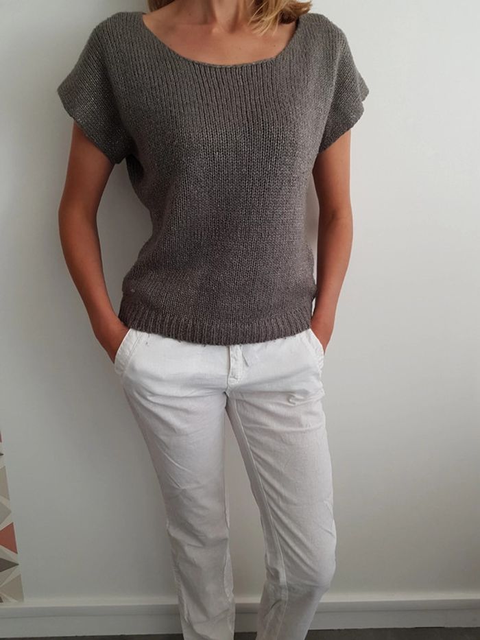 Pull manches courtes  gris fils argenté 36-38 - photo numéro 1