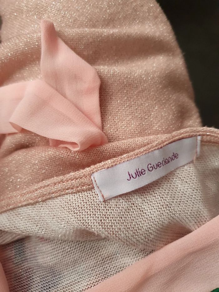 Magnifique pull fin Julie Guerlande fleuri Rosé irisé dos ruban cou à nouer T 42 44
