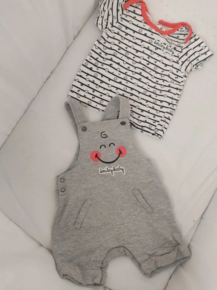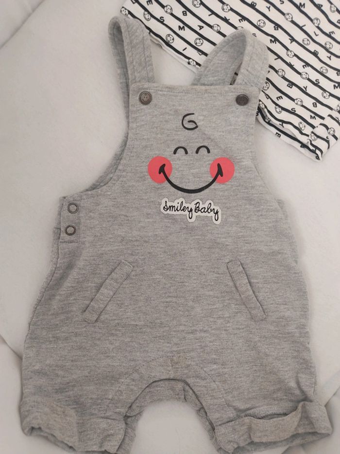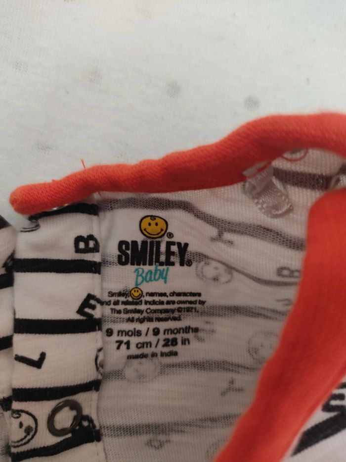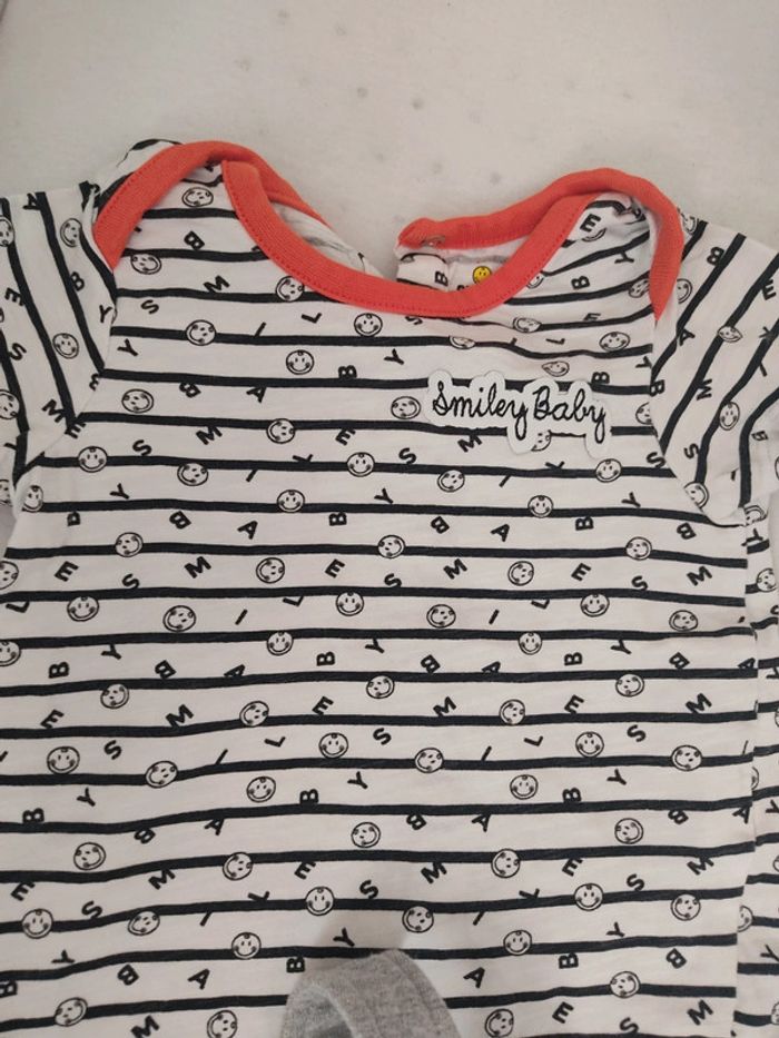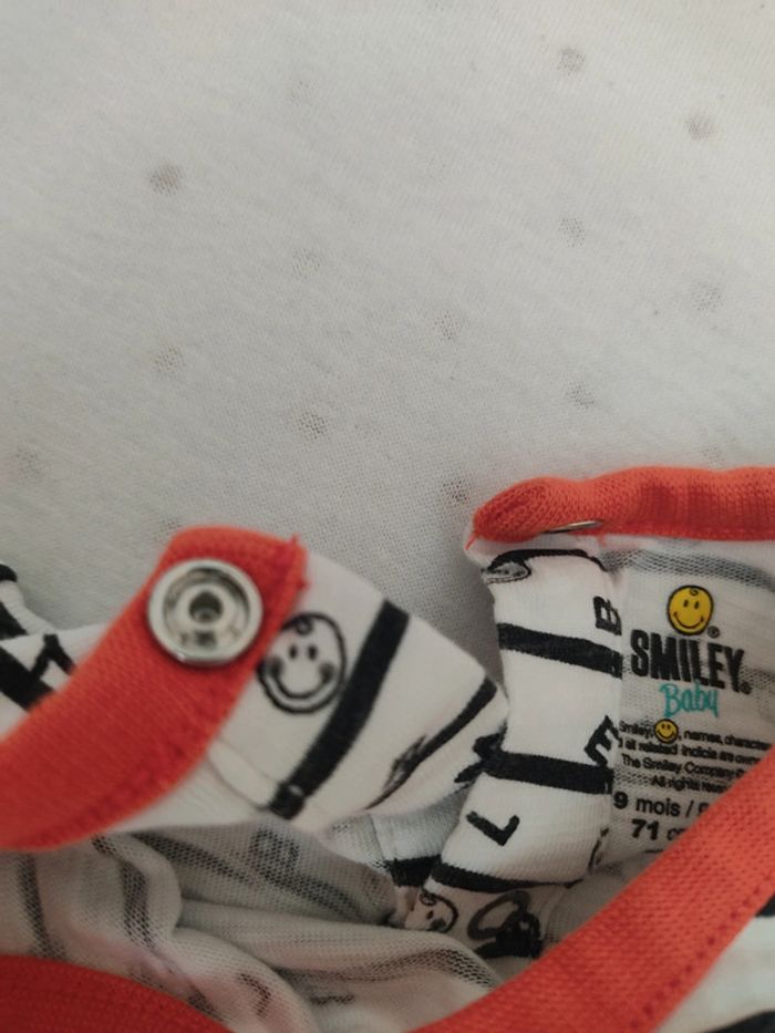 Ensemble taille 9 mois en très bon état, a l'exception de 2 défauts : - une légère tâche au niveau de l'entrejambe ( voir dernière photo) - une pression du tee-shirt est cassée donc le bouton du haut ne se ferme plus #sabine69780garcon12mois