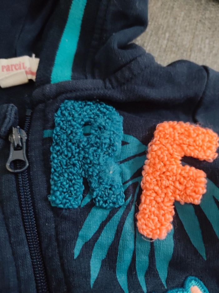 Veste taille 3 mois en très bon état, a été portée 3 fois. A noter qu'au niveau de la lettre du R, un petit défaut est présent au niveau du tissu ( voir dernière photo). Était déjà présent lorsque j'ai reçu ma commande qui avait été passée sur le site de la marque. #sabine69780garcon3mois