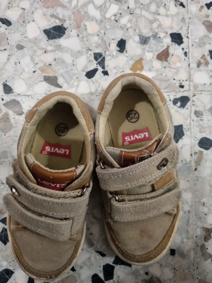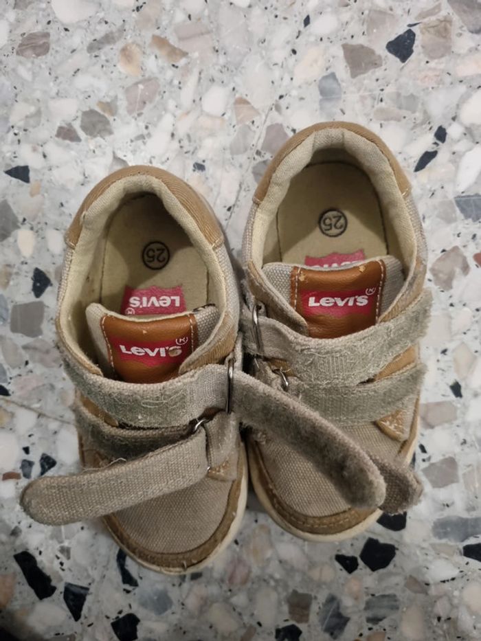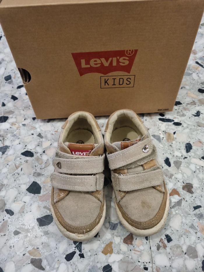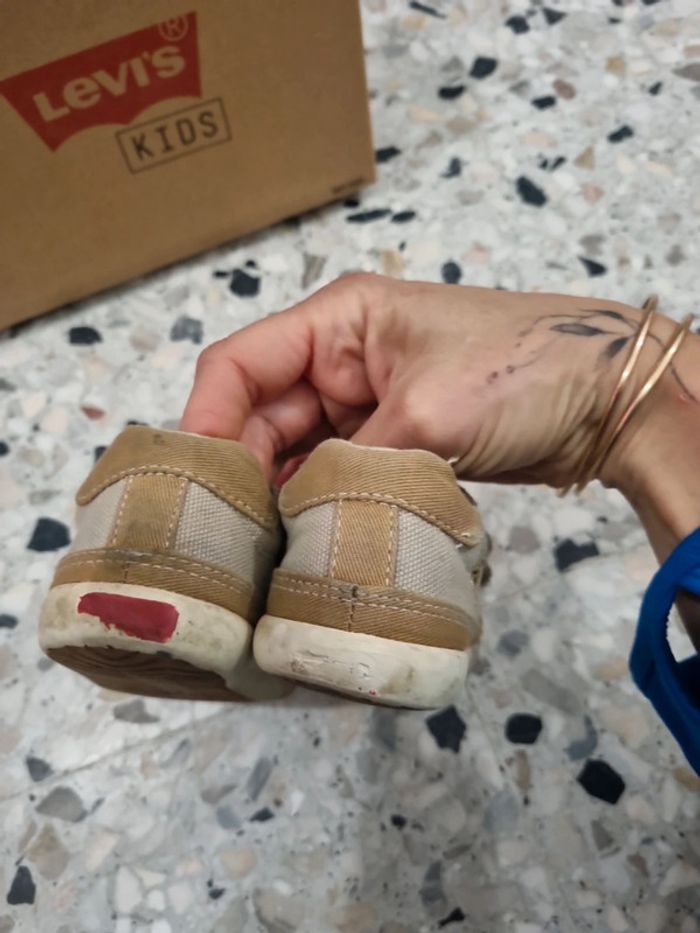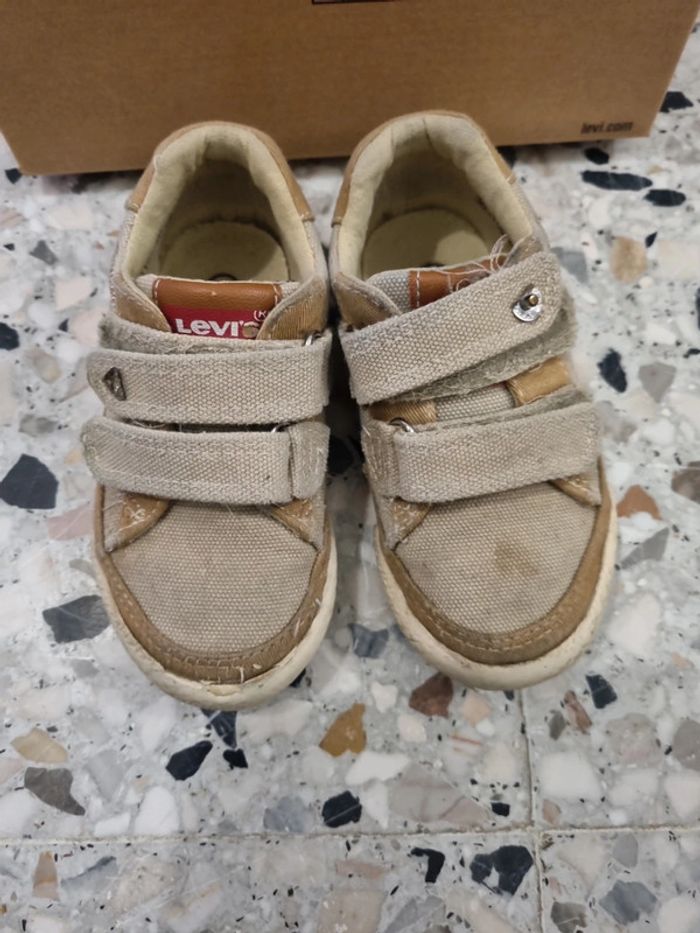Baskets toile levi's scratch, beige, une tâche sur l'une et devant un peu abîmé sur l'autre, 25, vendues avec boîte #somara66chaussures