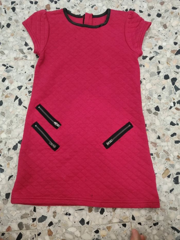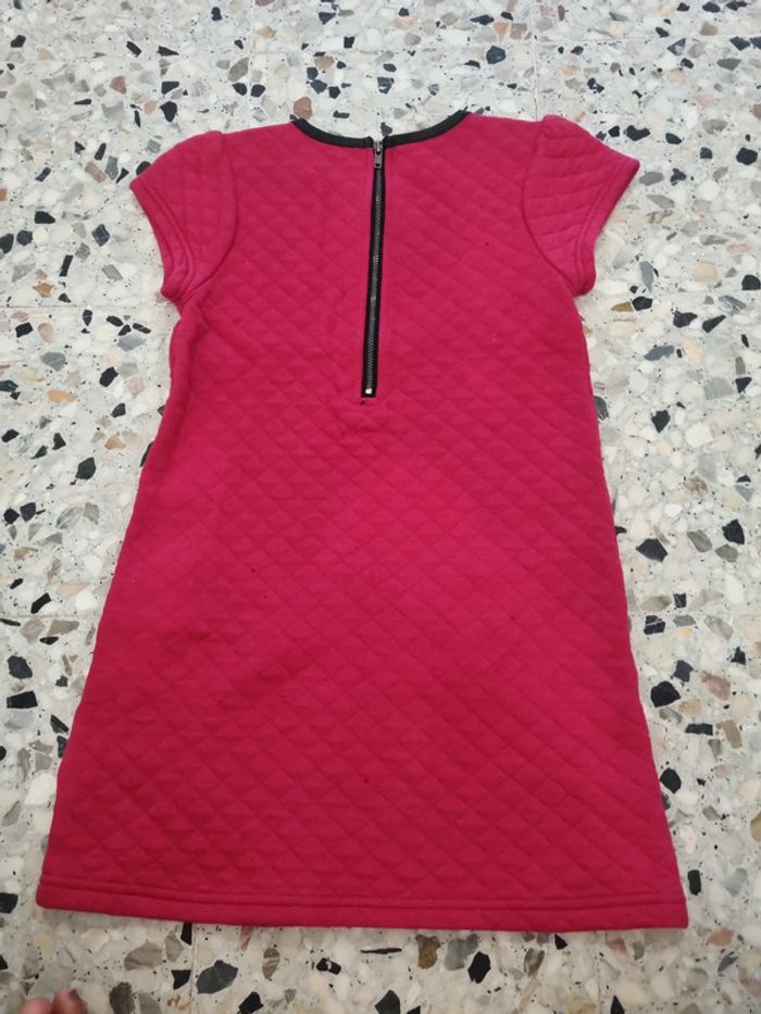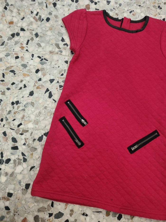 Robe rouge manches courtes , tissu matelassé,poches sur le devant,coton, 5 ans. Petite trace noire devant et col un peu abîmé #somara66fille5ans