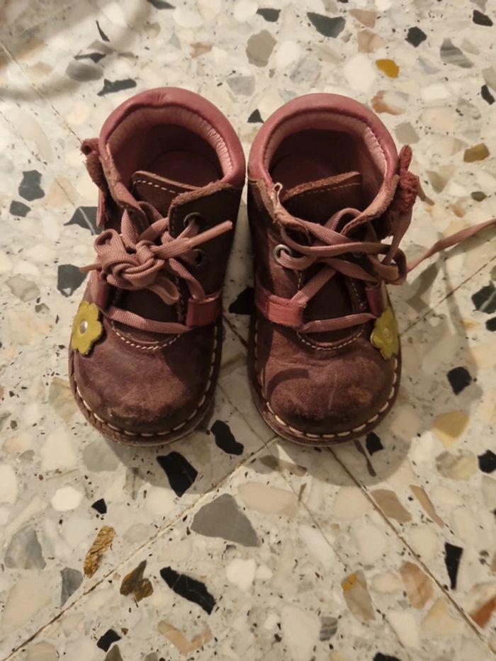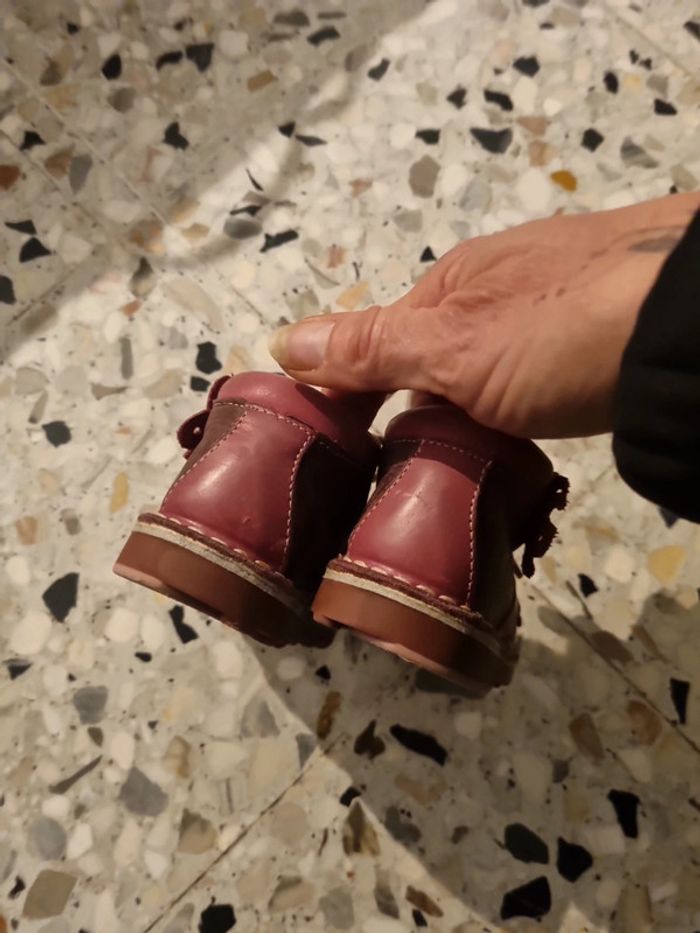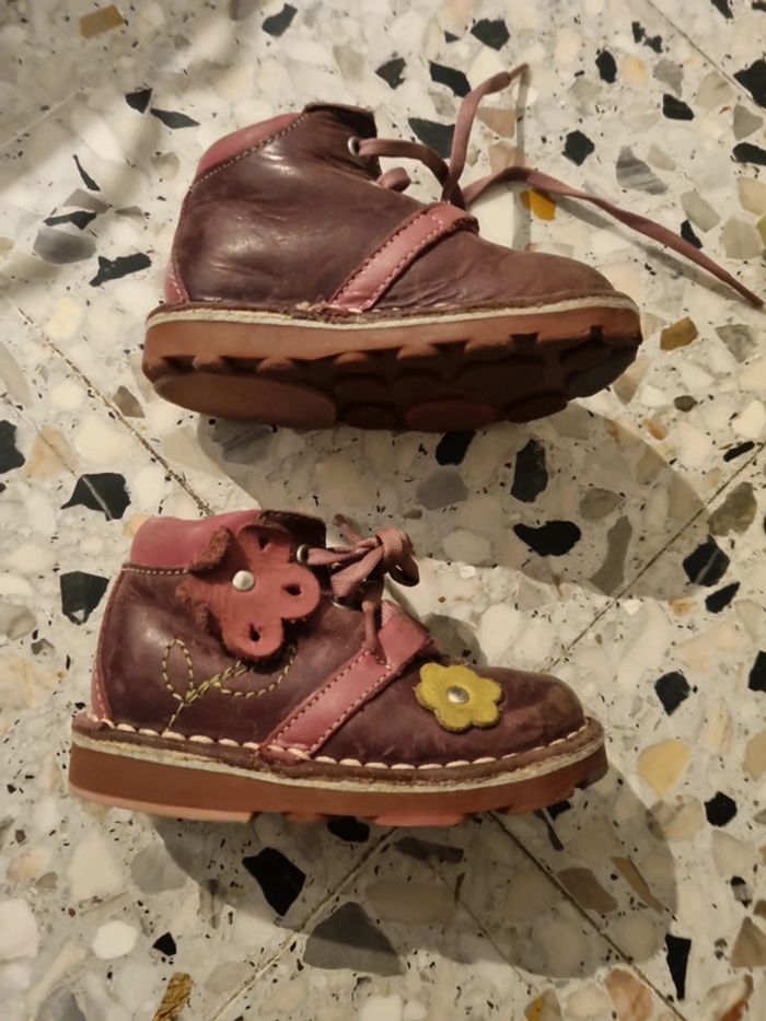 Botillons à lacets, marron et rose, avec fleurs, bonne tenue du pied, 20, tout cuir #somara66chaussures
