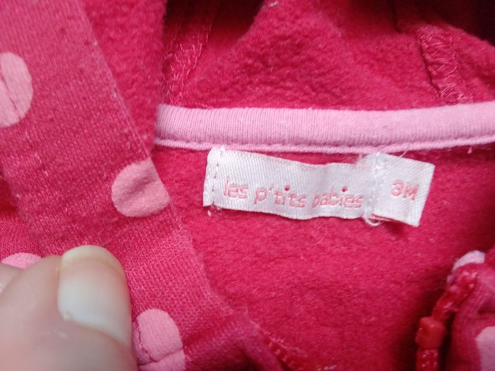 Joli sweat a capuche rouge a pois rose Les p’tits babies - 3mois