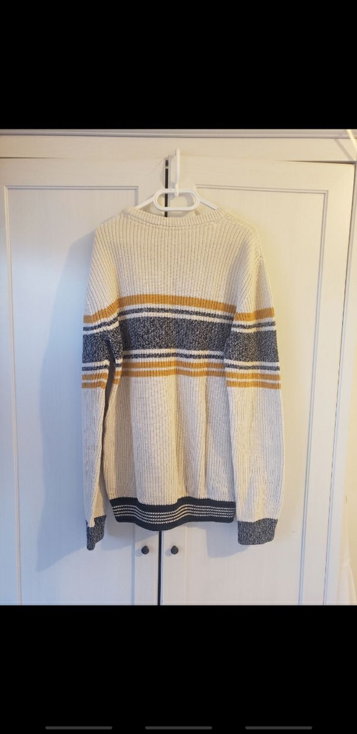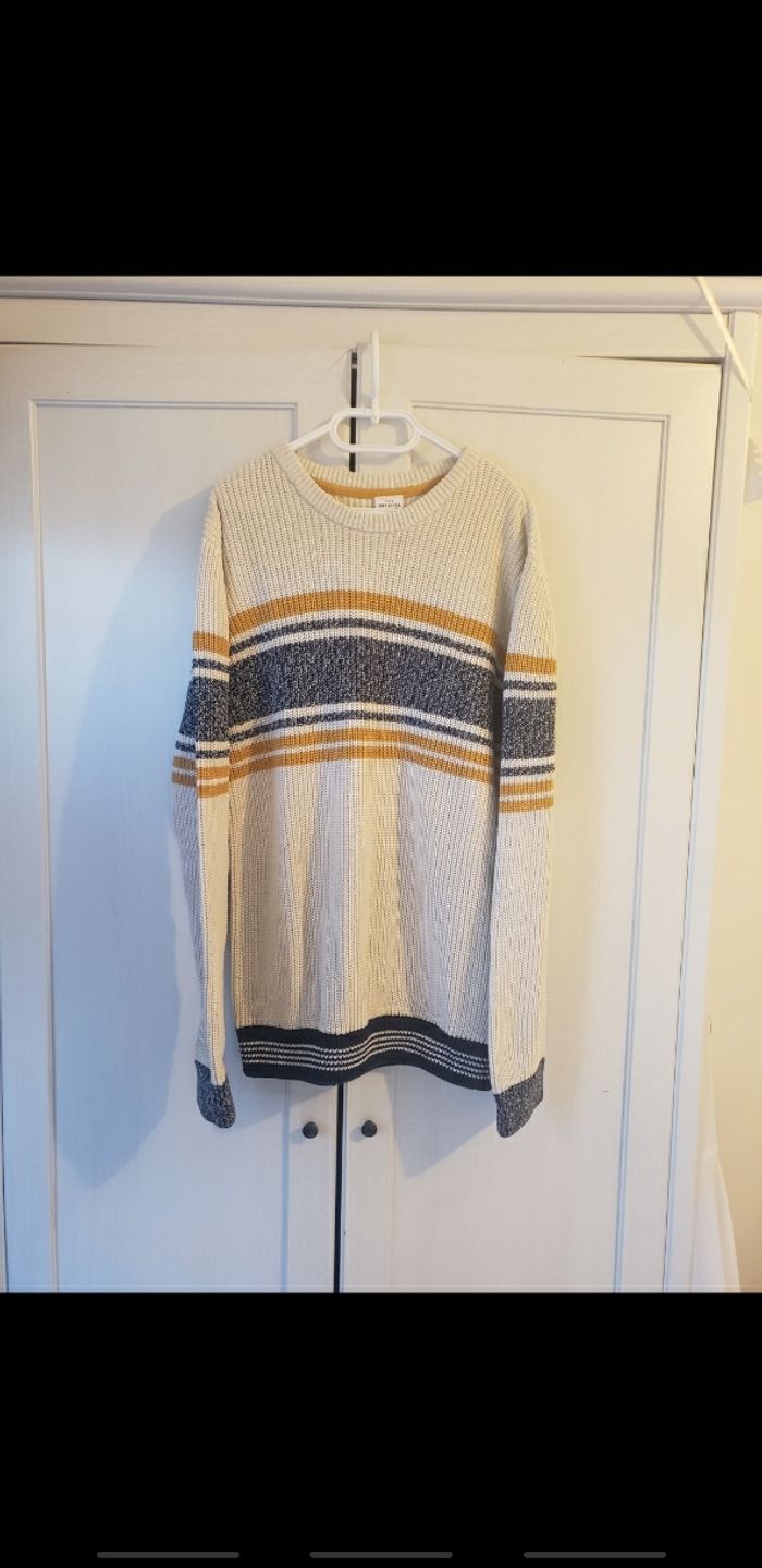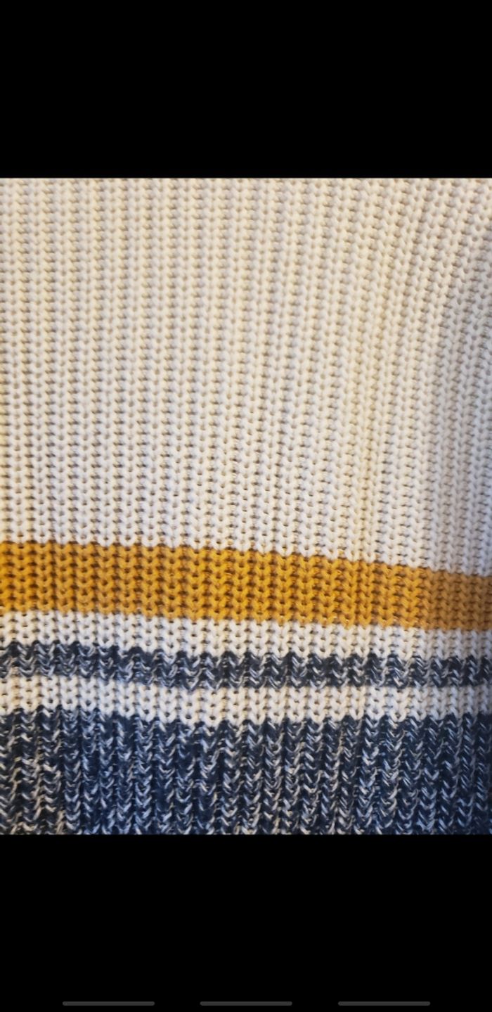 NEUF jamais porté🏷 Taille 14 ans / 164 cm Pull en coton / Mailles épaisse Bleu marine / Écru / Jaune moutarde Superbe👌