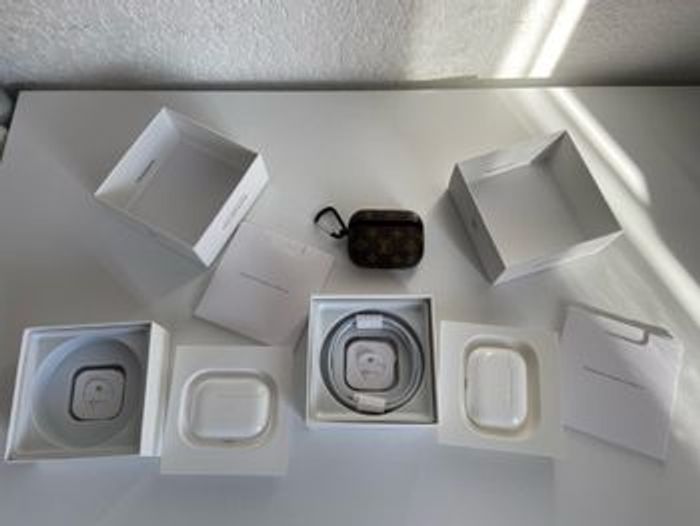 Écouteur Bluetooth apple pro lot de deux. Une boite avec tout les accessoires en parfait etat et l’autre boite il maque le chargeur et ya un ecouteur qui ne marche pas. Ce sont surment une contrefacon