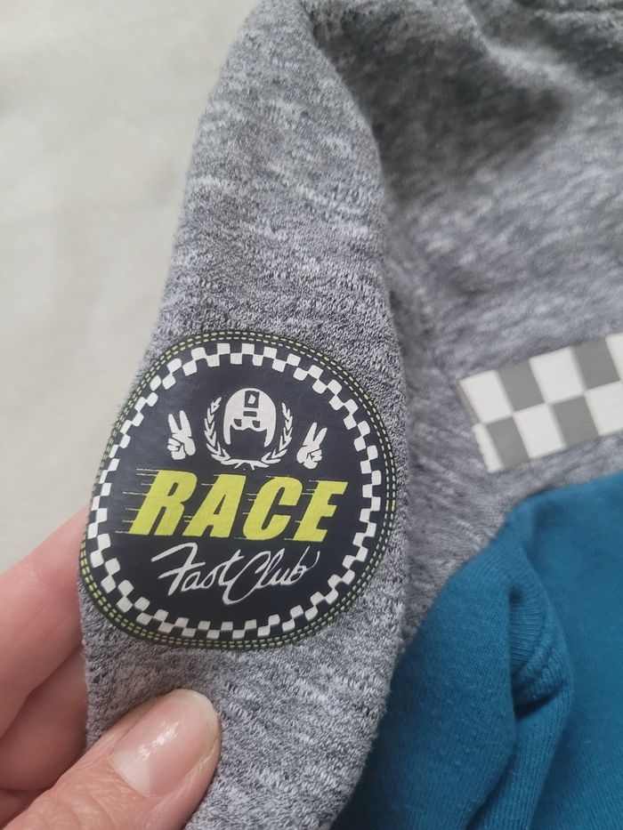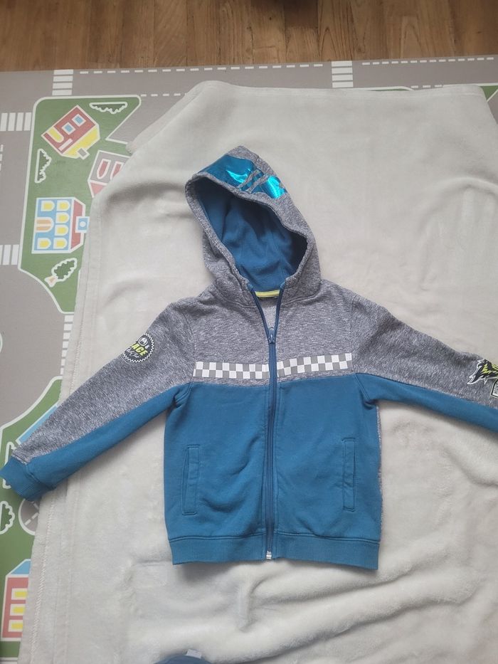 Gilet à fermeture éclair type course : dessins de course et sur la capuche dessin style visière Kiabi 5 ans Porté mais très bon etat