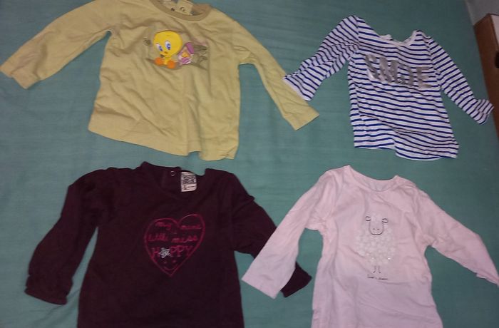 Lot de 4 tee shirt Manches longues 12 mois Marques obaibi, TAL, Tex et Looney toons Bon état
