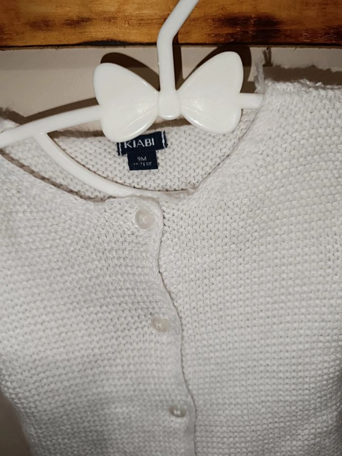 Gilet Kiabi bébé 9 mois écru en très bon état. N hésitez pas à faire un lot pour bénéficier de réductions.