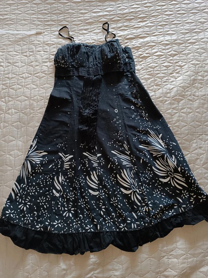 Robe femme noire et blanche en très bon état taille S soit 36 la robe à deux fines bretelles. N hésitez pas à faire un lot pour bénéficier de réductions.
