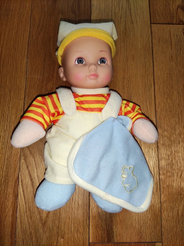 Poupon en très bon état hauteur jusqu'en haut du bonnet 45 cm et jusqu'à la tête 25 cm