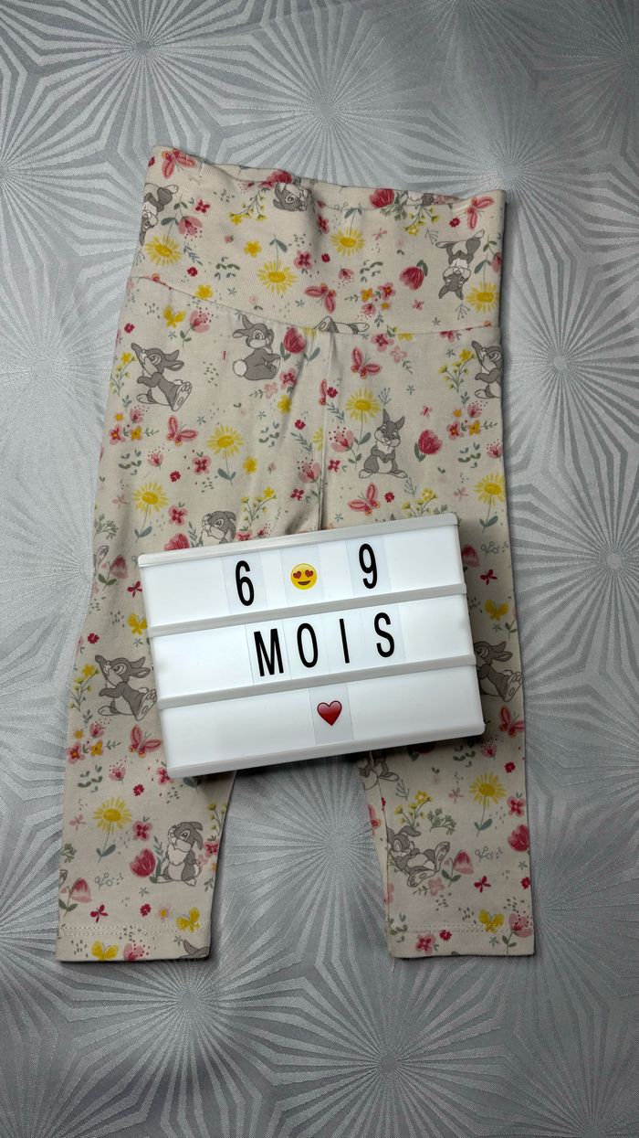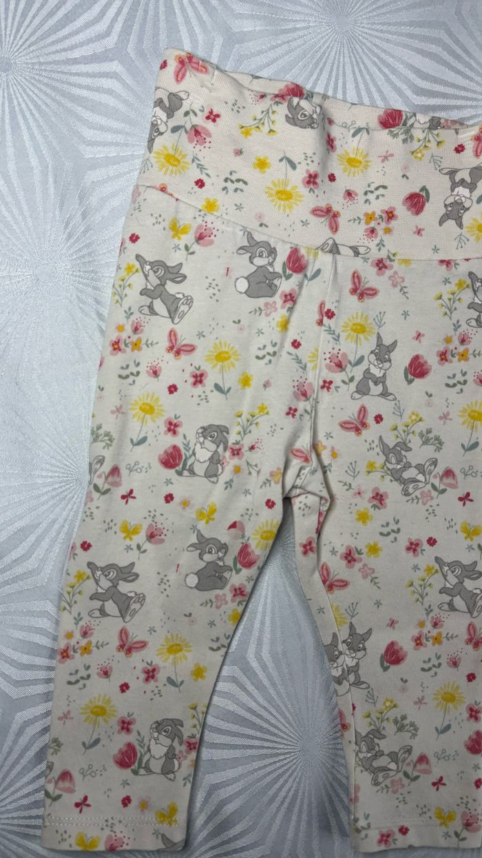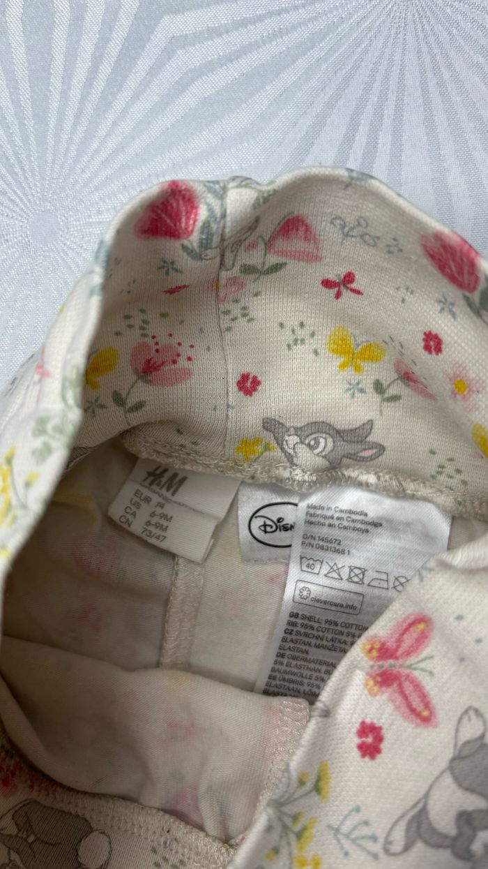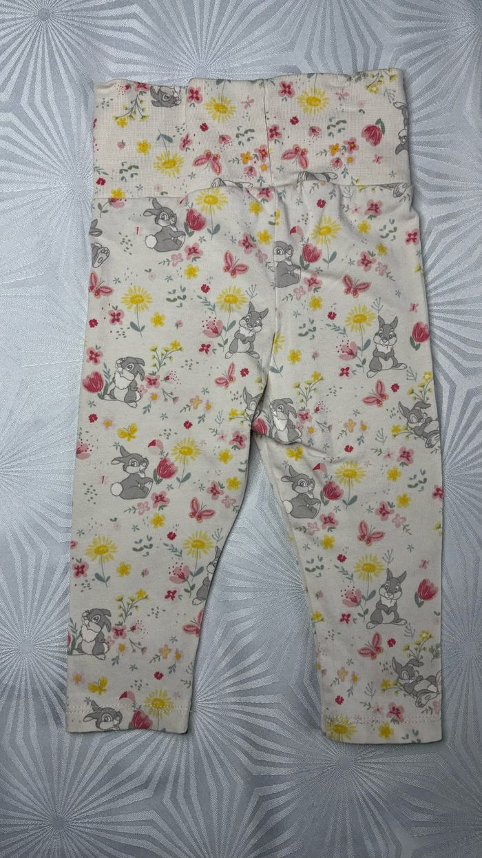 👖 Legging 👖 🐰 Taille: 6-9 mois - 74 cm 🐰 Marque: H&M - Disney 🐰 Couleurs: Blanc, crème à motifs fleurs et lapin Panpan