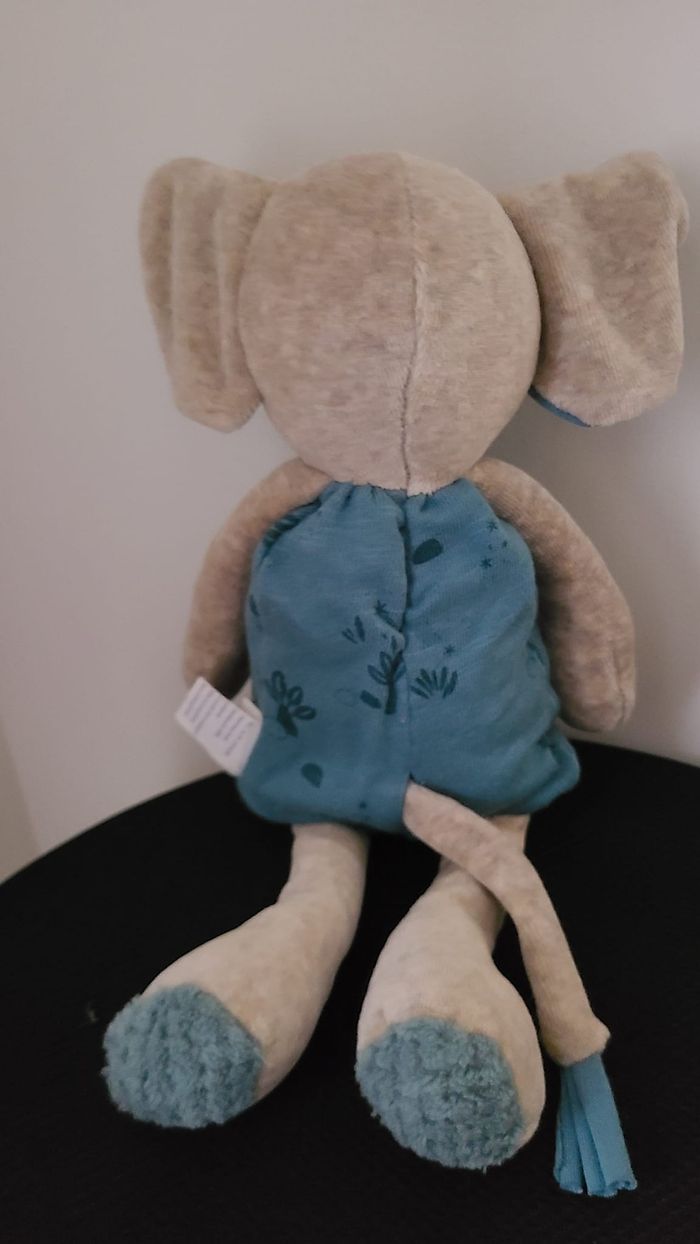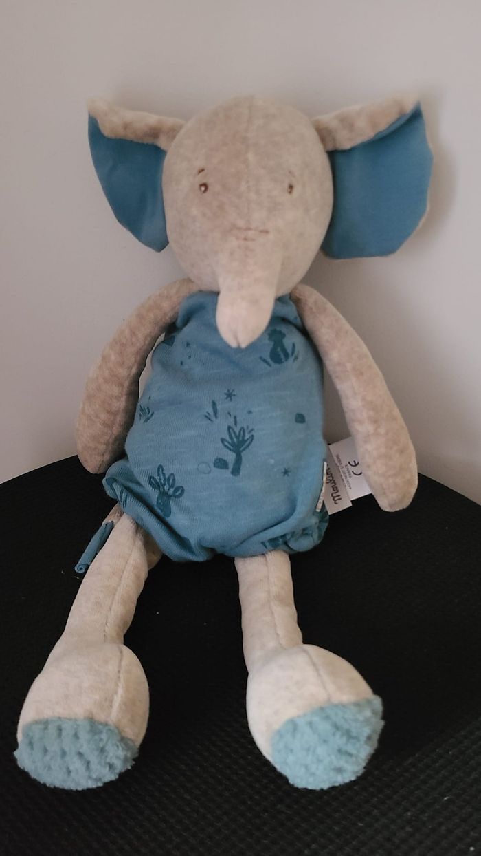 Doudou éléphant bleu gris Bergamote Sous mon baobab MOULIN ROTY