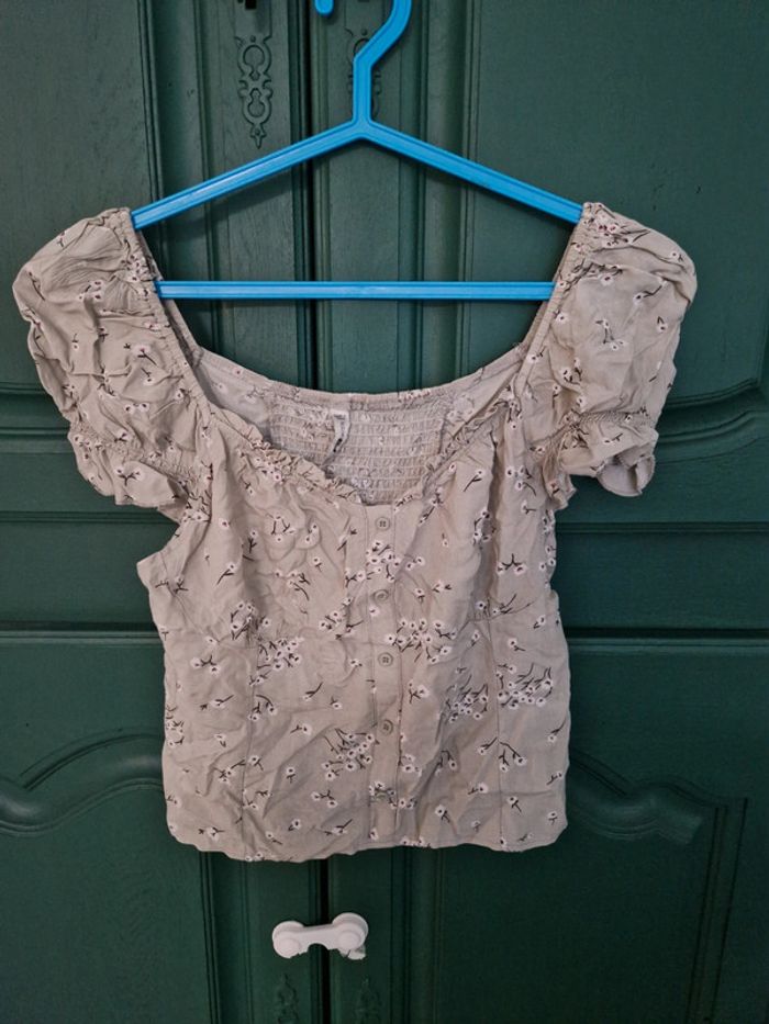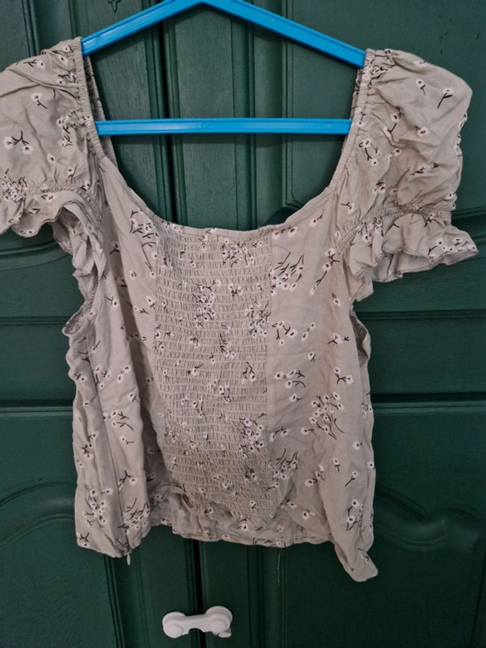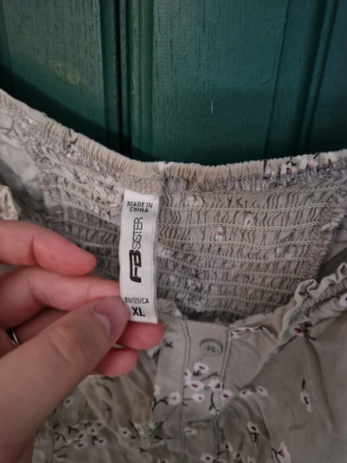 Haut vert clair a petites fleurs Taille XL Bon état Marque FBSister
