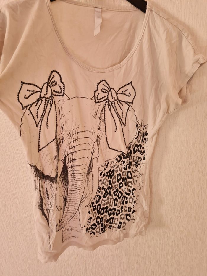 T-Shirt éléphant. Taille 16 ans. Je ne sais plus la marque car l'etiquette est blanche. Bon état. #lul55vintedfille16