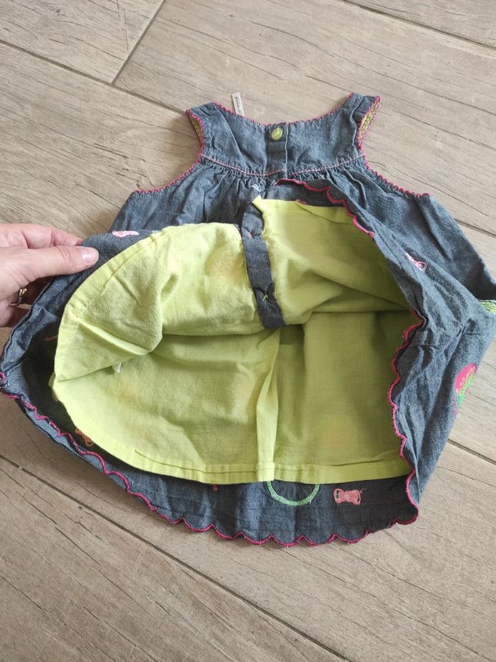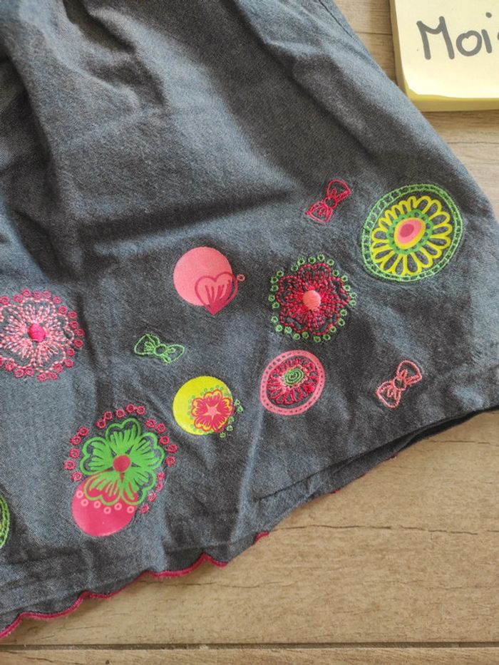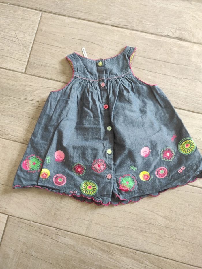 Robe d'été grise à motifs fleurs roses et vertes. Orchestra 12 mois
