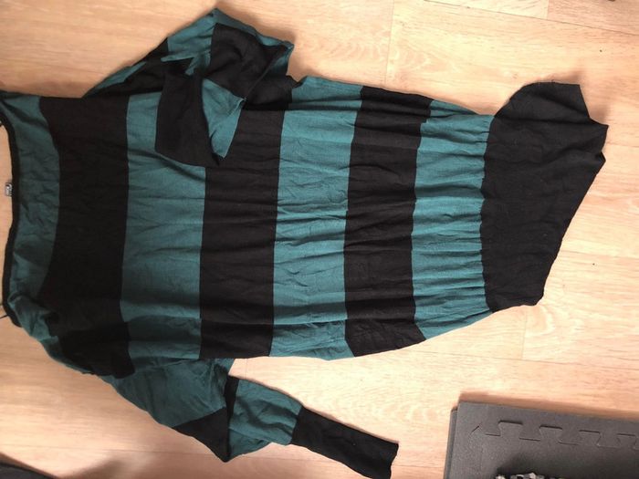 Robe pull pimkie rayée verte et noire taille 38 large en haut et plus moulante au niveau des jambe - photo numéro 1