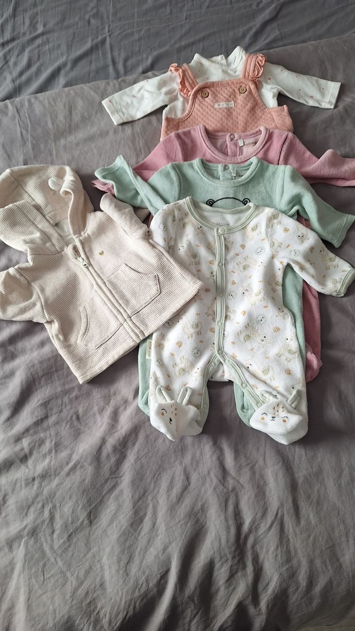 2 pyjamas 1 mois 1 pyjamas naissance 1 ensemble 6 mois 1 veste 1 mois . Très peu porté