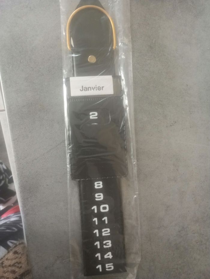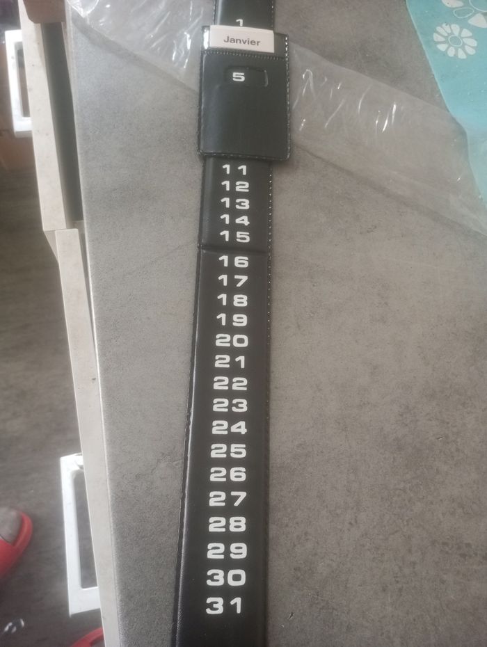 Calendrier ceinture en Sky pour posé sur un bureau ou autre ou pour accrocher très original couleur noir et mixte
