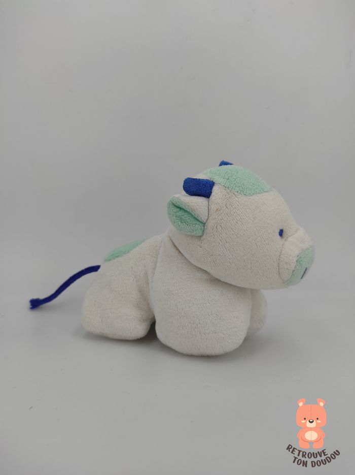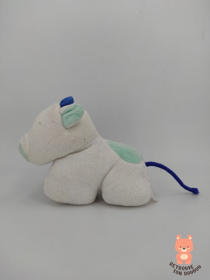 🐮 Doudou Vache Blanche Bleu et menthe en tissu éponge, avec grelot dans le corps pour faire hochet, queue en ficelle bleue, marque inconnue 📏 Dimension : 15 cm environ ✨ État : Occasion, bon état 🧼 Lavé avec lessive hypoallergénique 👀 Vous achetez le doudou que vous voyez sur les photos.