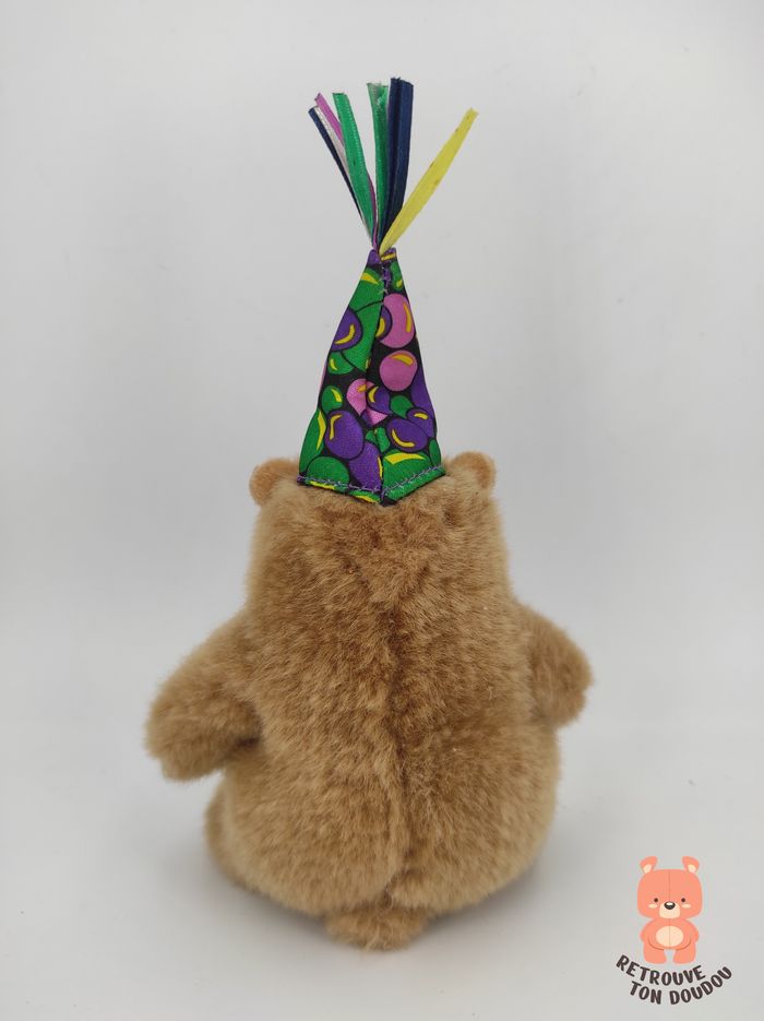 🐻 Peluche Ours brun avec tenue de fête, chapeau d'anniversaire, Charmin 📏 Dimension : 15 cm environ (sans chapeau) ✨ État : Occasion, excellent état 🧼 Passage vapeur 👀 Vous achetez le doudou que vous voyez sur les photos.
