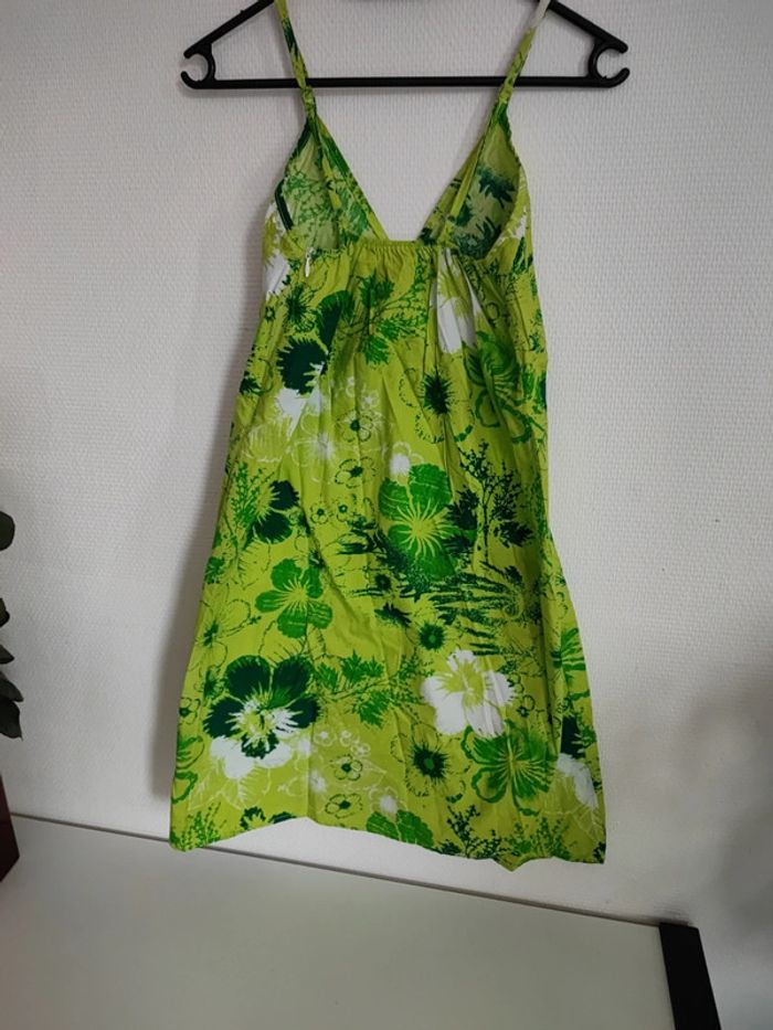 Robe avec fermeture éclair sur le dos En très bon état à part un trou en bas de la fermeture éclair mais ne se voit pas trop Pas d'étiquette de taille mais correspond à un S