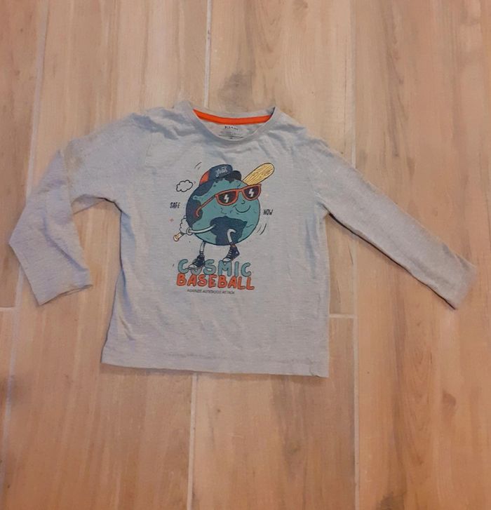 T-shirt gris "Cosmic Baseball against astéroïds attack" Kiabi Coton biologique 5 ans 108-113 cm #sandrinelpg_5ans #sandrinelpg_enfant