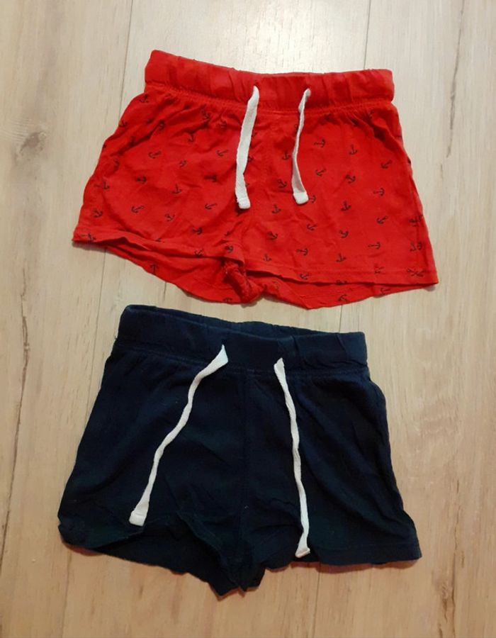 2 shorts : • rouge ancré marine - cordon - très bon état - 18 mois - 77/82 cm - 11 kg • bleu marine - cordon - trou sur la fesse droite (photo) - 18 mois - 77/82 cm - 11 kg Kiabi Tissu léger et respirant #sandrinelpg_18mois #sandrinelpg_enfant #sandrinelpg_bebe