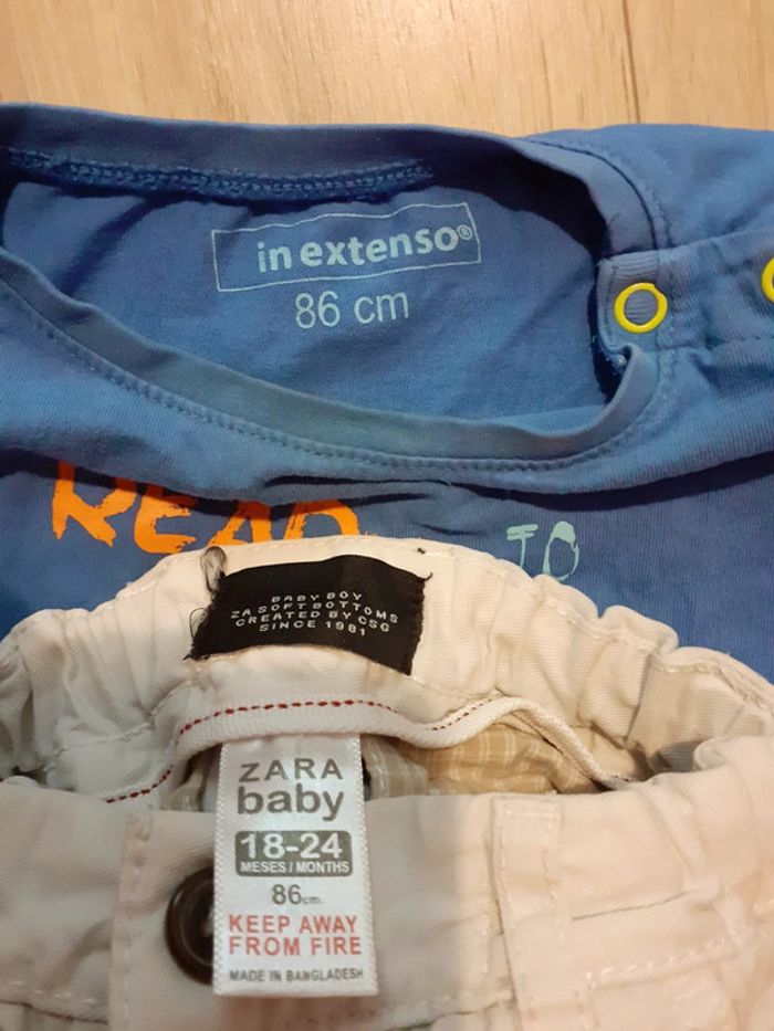 • Short blanc cassé - taille ajustable avec bouton et élastique - Zara baby - 18/24 mois - 86 cm