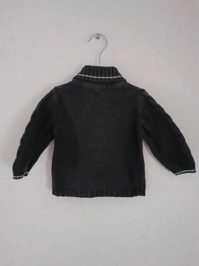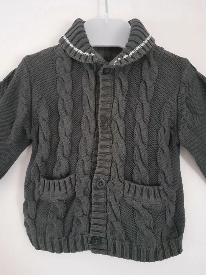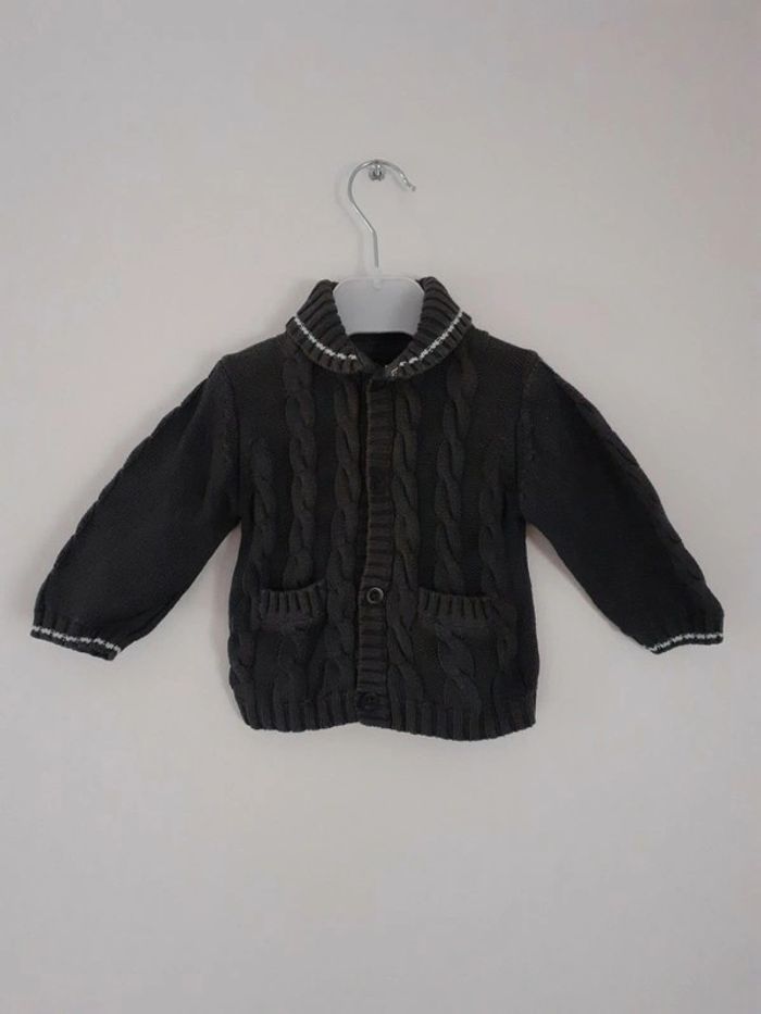 Gilet gris foncé Fermé par 4 boutons Liseré blanc sur le col et les poignets Tricot avec torsades 2 poches Marque : BabyGap Taille : 3 - 6 mois #sandrinelpg_bebe #sandrinelpg_3mois #sandrinelpg_enfant