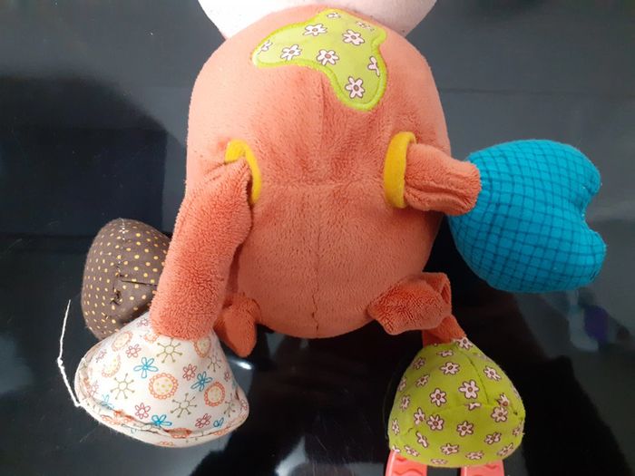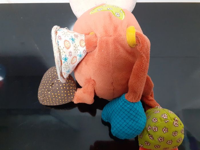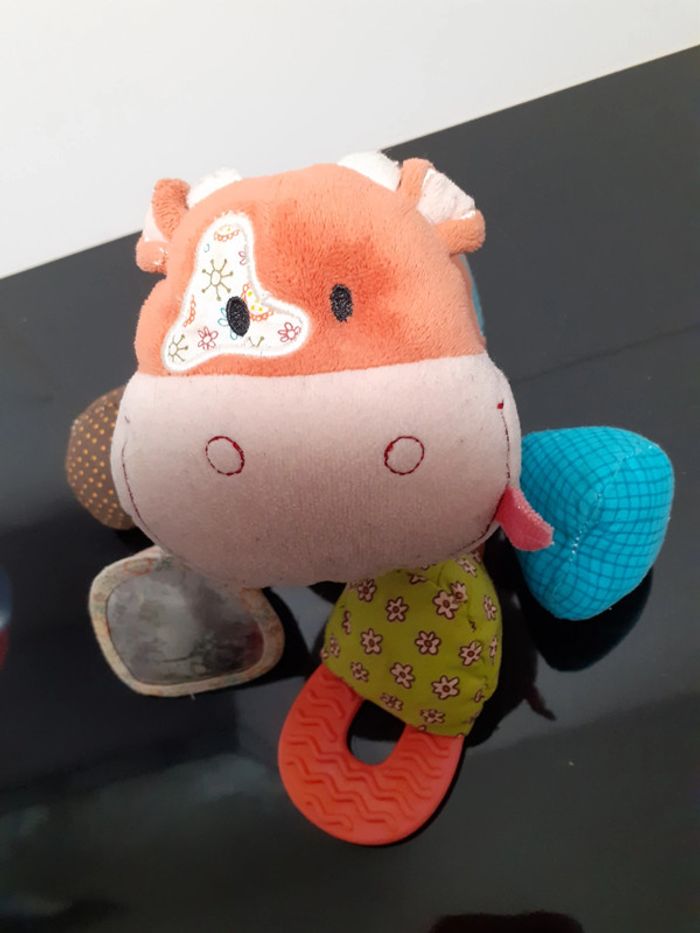 Vicky vache - Les lilliputiens Éveil des sens tactile et visuel grâce à ses pattes : • effet miroir • bruitage plastique • anneau de dentition • pouet-pouet Les pattes-avant coulissent dans le buste de l'animal. 17 cm environ Lavable en machine #sandrinelpg_peluche #sandrinelpg_enfant #sandrinelpg_puericulture
