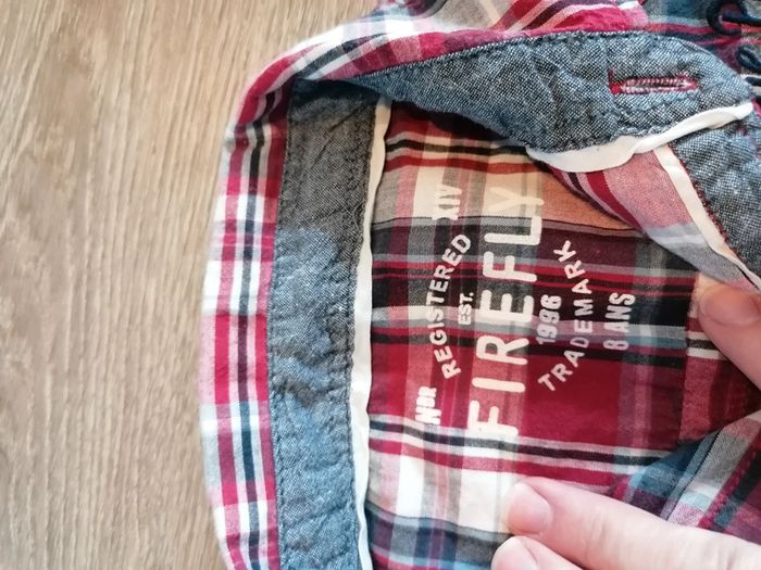 Bonjour, je vends cette chemise à carreaux rouges noirs et blancs de la marque Firefly taille 8ans en très bon état. Lavé maison non fumeur.