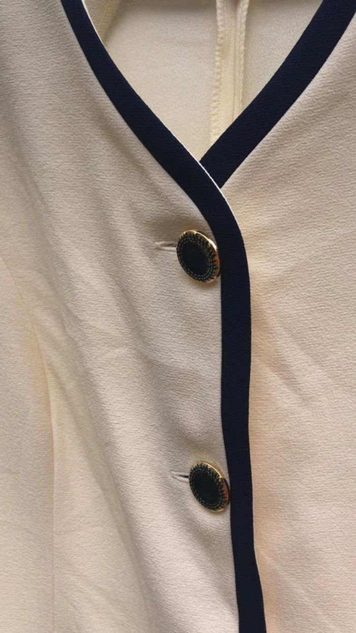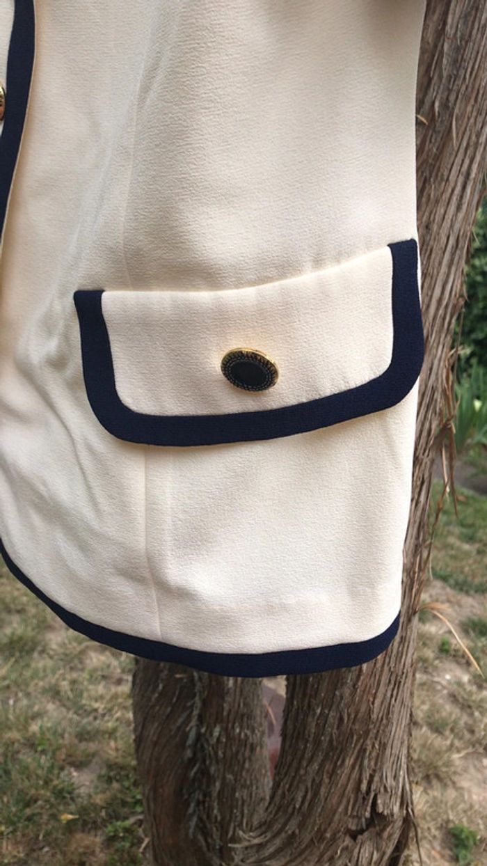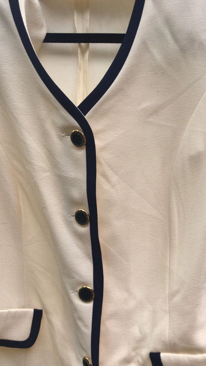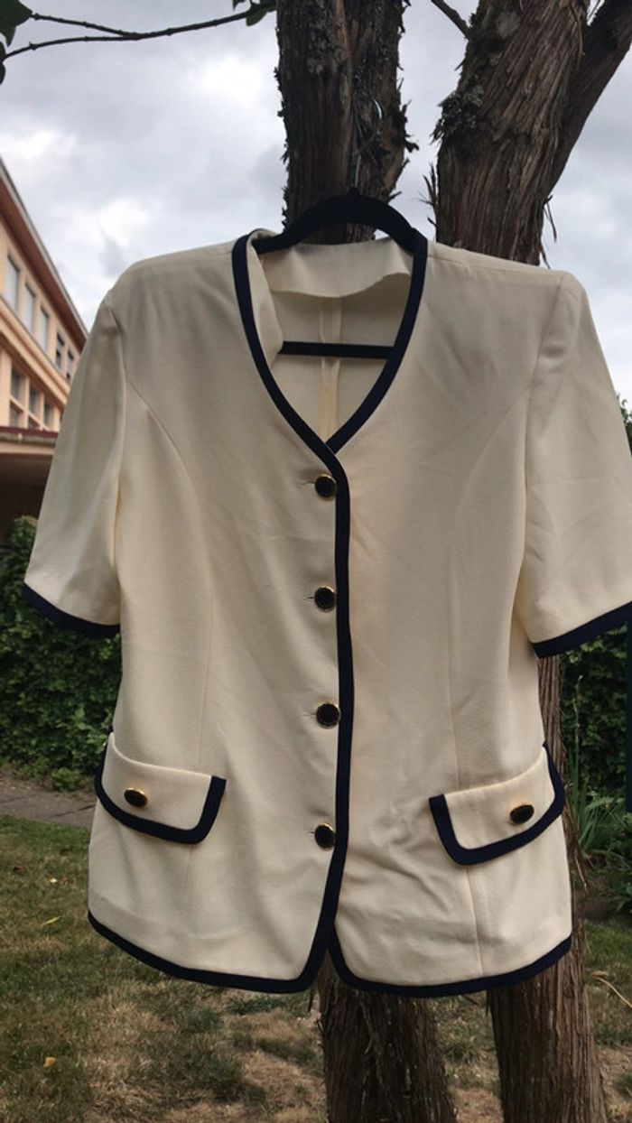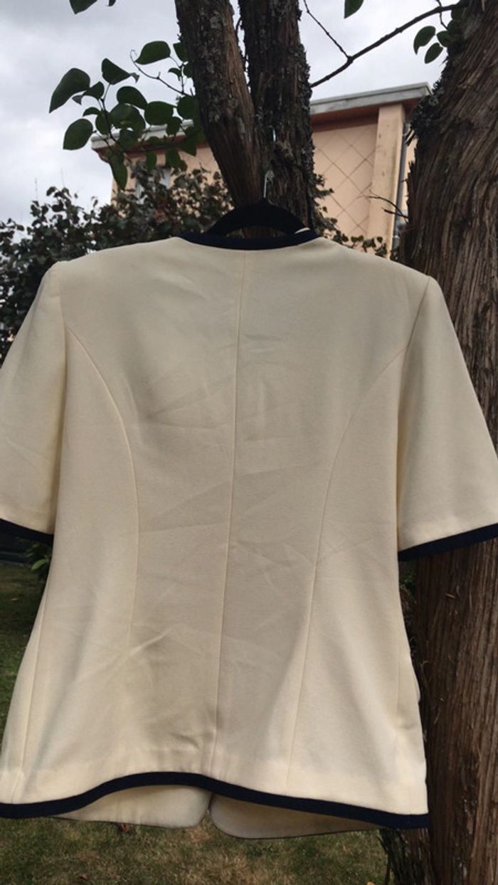 Veste habillée T 40/42 peu se porter sur une jupe ou un pantalon Non doublée , épaulettes fausses poches devant Se ferme avec 4 boutons 100% polyester