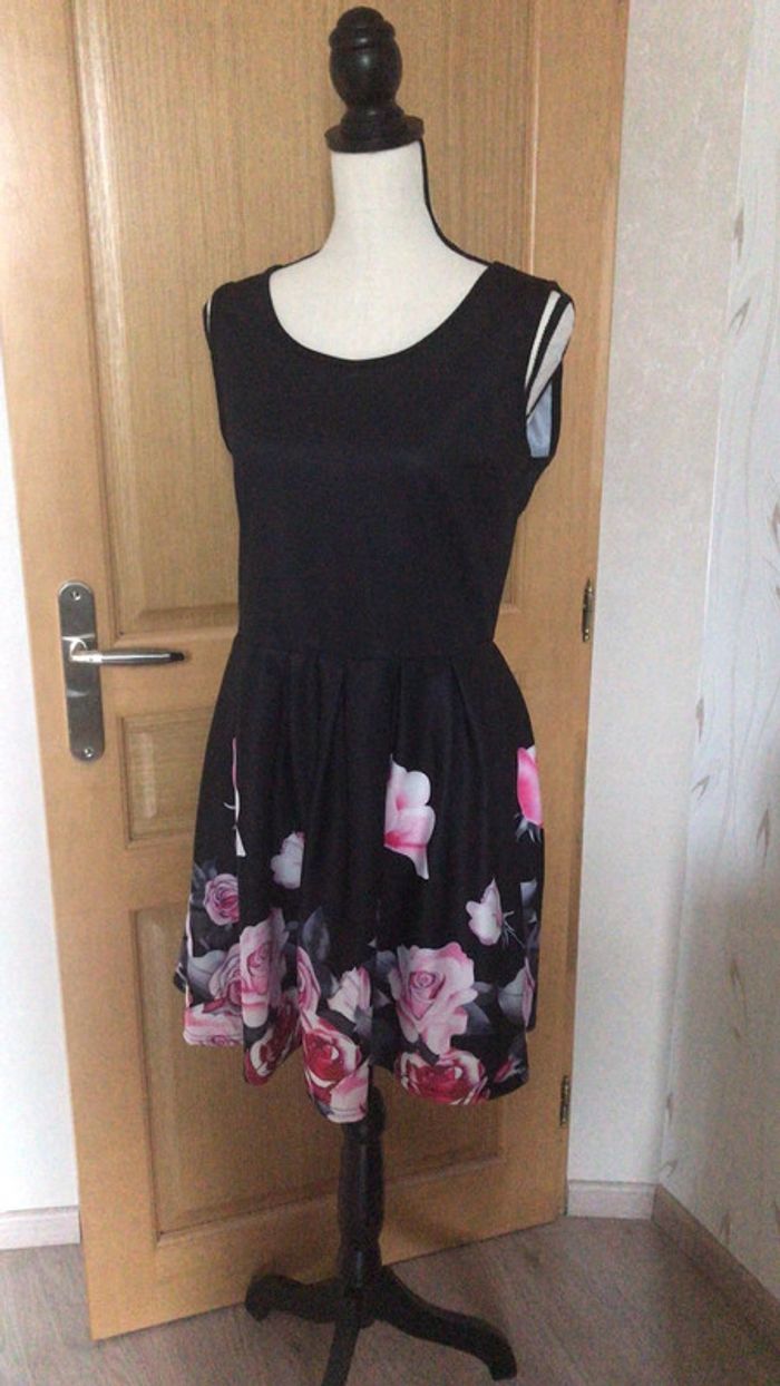 Superbe robe été chic sans manche , le haut uni et le bas fluide avec des fleurs Longueur épaule .. bas. 86cm