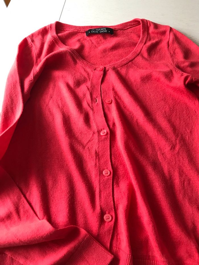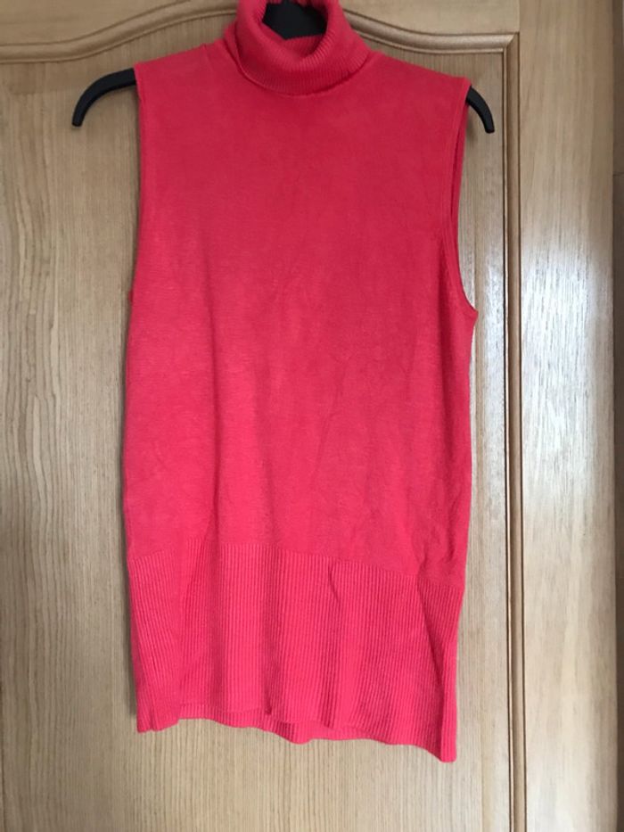 Pull col roulé sans manche couleur corail très lumineux +gilet assorti petit accro voir photo
