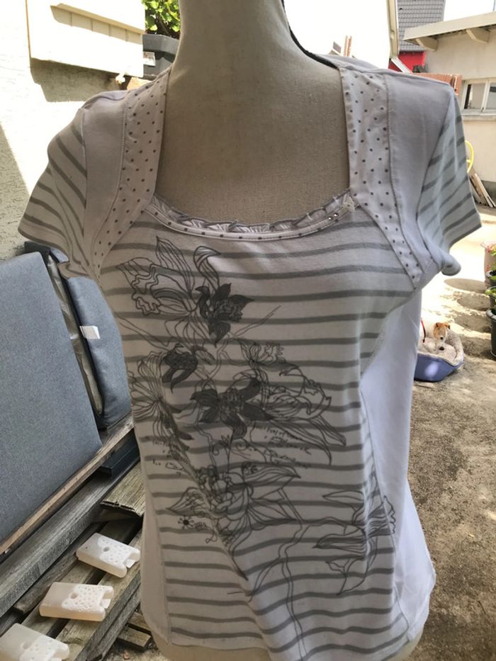 Teeshirt manches courtes Taille 4 Voir photos une tte petite tache et un petit trou Aisselle à aisselle 44donc x 2 pour avoir le tour