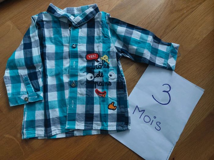 Chemise à carreaux turquoise 3 mois - photo numéro 1