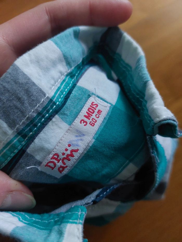 Chemise à carreaux turquoise 3 mois - photo numéro 3